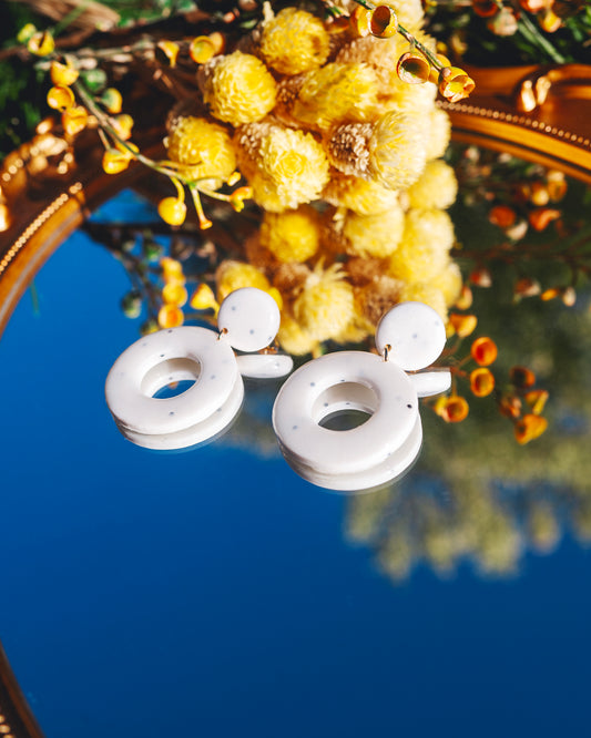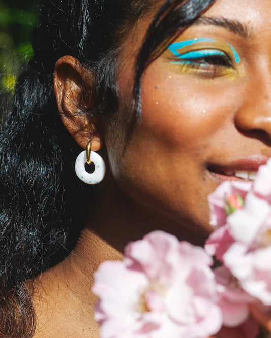 Craque pour les boucles d'oreilles faites à la main dans mon atelier toulousain avec amour et fun. Les boucles sont toutes uniques et produites en édition limitée. Elles n'attendent qu'une chose : continuer leur histoire avec toi 🫶