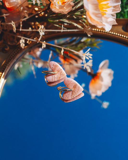 Craque pour les boucles d'oreilles faites à la main dans mon atelier toulousain avec amour et fun. Les boucles sont toutes uniques et produites en édition limitée. Elles n'attendent qu'une chose : continuer leur histoire avec toi 🫶